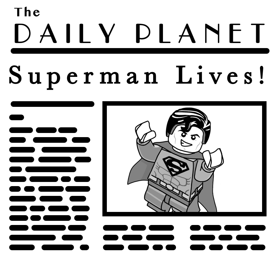 I started working on the interior detailing for the Planet model including designing decorative tiles. I want to have 2×2 tile “newspapers” like the ones that official LEGO sets have, but with small (and I do mean small!) Easter eggs for fans of Superman. The first ones I designed are the ones from Superman Returns with Brandon Routh in the lead role. After Superman pushes the kryptonite laden island that Lex created and is badly injured, there’s a scene where the camera is looking over Perry’s shoulder in his office and he’s designed and had pre-production prints of newspaper headlines that cover his bases whether Superman lives or dies. You can see my versions below.
