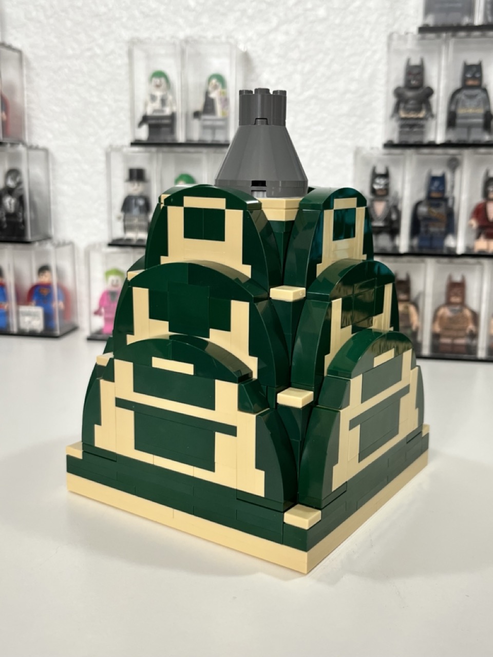 I just finished the interior detail work on the second floor of the Daily Planet. I modeled it somewhat on the Planet from Smallville and leaned into the art deco facade inside. For a long time it just seemed like a big empty box made of LEGO no matter how I oriented desks and other furnishings, but I knew I wanted to have big news “monitors” that would be printed 2×4 tiles with printed graphics for “televised news feeds” from Metropolis, Gotham, Star City, and Central City. Then I had an idea to put a column in the middle of the room, which of course was unstable with the 3rd floor removed, so I played around with adding archways to support it, and it ended up not only being evocative of the Smallville version, but broke the interior up making it feel more like an official LEGO set.